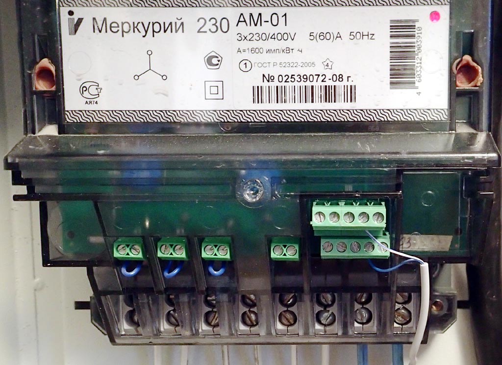 У счётчика "Меркурий 230 АМ-01" есть информационный выход, замыкающийся в те моменты, когда включается мигающая лампочка. Это не сухой контакт, а транзисторный выход. Полярность и напряжение на подключаемом кабеле имеют значение.
