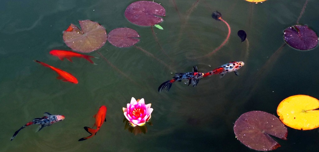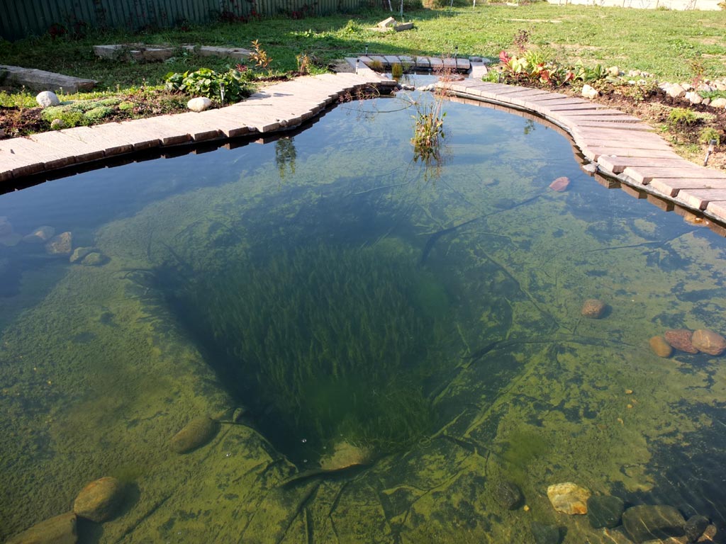 Тина хорошо растёт в освещённом пруду с обилием органики. Ряска растёт в стоячем пруду в тени. Вода может быть мутной из-за одноклеточных водорослей при отсутствии высших растений, или если поступающая в проточный пруд вода содержит взвесь глины. Надо создать такие равновесные условия, которые нам нравятся. Например, многим нравится прозрачная вода, рыбки и кувшинки.