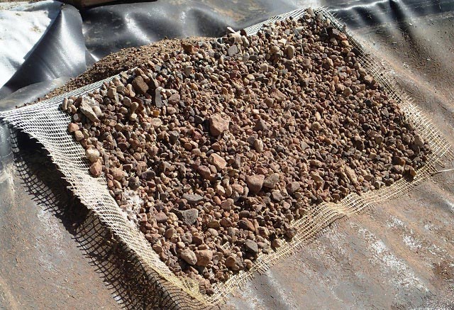 Галька видна на фото с ежевикой справа. У меня два куска сетки 40x60см с наклеенной галькой. Уже несколько раз они замерзали и оттаивали. Несколько камушков отвалилось. Это почти незаметно. В конце зимы станет яснее, сколько камней останется.