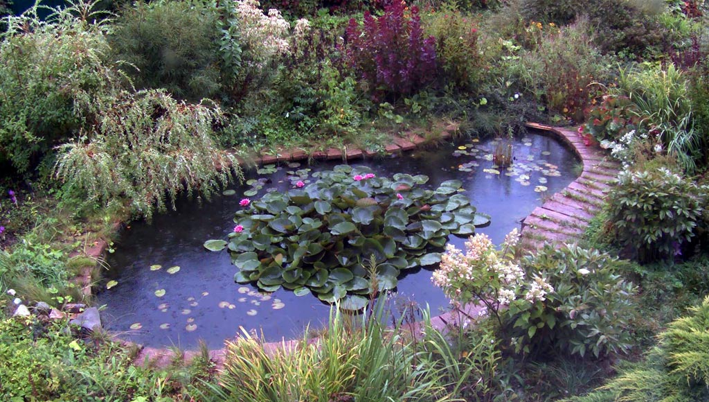 Я выкопал на участке пруд лопатой. Завел там рыбок и кувшинки. Для поддержания уровня воды сделал водопадик и циркуляцию воды через фильтр. Все вышло почти случайно после прокладки дренажных труб вокруг дома, и после удаления огромного куста ивы. Смотрите страничку Как на месте куста получился пруд. После куста осталась некрасивая большая яма. Чтобы труд не пропал напрасно её решили превратить в пруд.