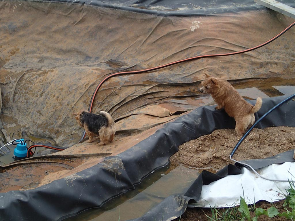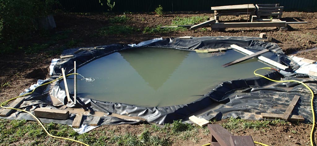 В первый раз пруд был заполнен за 3 дня при помощи имеющегося дренажного насоса. Этот насос был слишком мощным, и не подходил для постоянного использования в фильтре.